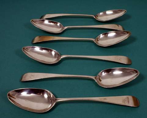 by William Byres of Aberdeen, circa 1790, marked WB, ABD, gothic Q, Old English pattern with engraved initial D in foliate script to terminal (6)