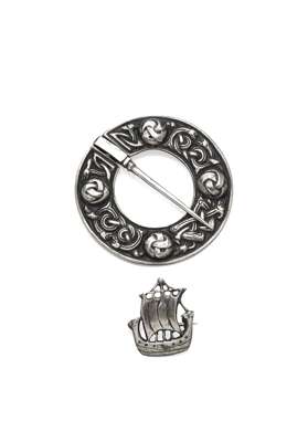 Annular brooch 5cm diameter, galleon brooch 2cm wide