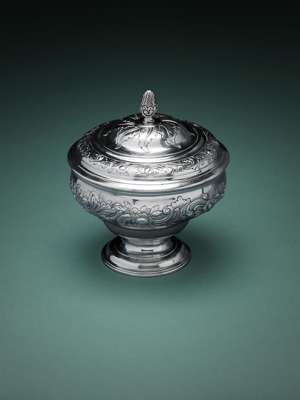The majority of covered sugar bowls of the fifteen recorded are of Edinburgh manufacture with only a small handful known by Glasgow makers. A Sugar bowl by this maker is represented in the National Museum of Scotland Collection