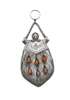 unmarked, formed as a miniature sporran, the diamond shaped cantle with engraved thistle and prick border with ball hinge opening to a leather lined purse, the main body chased as a horse hair sporran set with six tear shaped orange cabochons, suspended from a belcher link chain