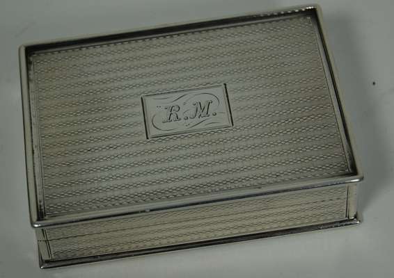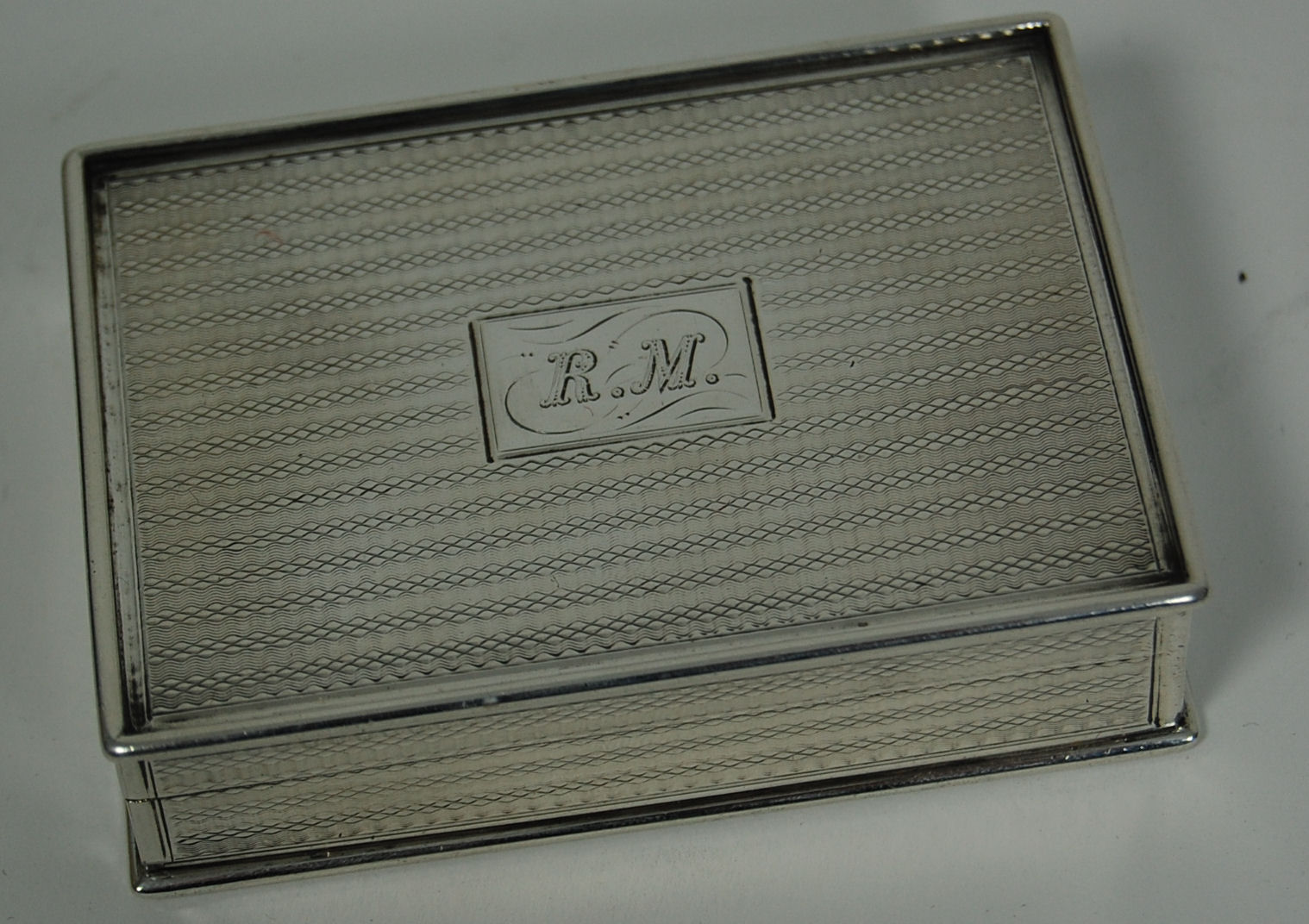 by Brown & Miller (of Glasgow), Edinburgh 1837-1838, of rectangular outline with raised borders, the panels all with engine turned all over decoration, the central cartouche engraved R.M