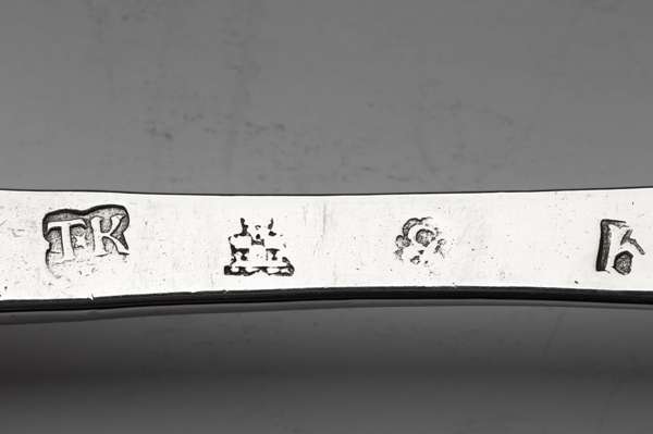 Notes: Thomas Kerr first appears within the Edinburgh Goldsmiths records on 1st February 1692 where he petitioned for the opportunity to present an essay of his work and there after to be considered for entry as a Freeman of the trade, to this end he is required to produce and present 'ane silver posset dish with gather rounds and ane gold buckle' [sic], his essay was to be completed in present Deacon and his masters John Penman's shop and his overseers were appointed as George Yorstone and Thomas Cleghorne. He was admitted a Freeman on the completion of his essay on 27th March 1694. He was elected Quarter Master twice in both 1698 and 1699.