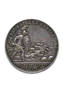 struck in silver, obv, Duke of Cumberland facing right, rev, soldier chasing a falling beast, EF