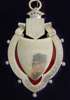 unmarked, of shaped oval outline with central shield engraved 'Presented by Ex Provost Simpson to (un-issued) for Best Turn Out' with red enamel border, the outer garter border inscribed 'THE RIDINGS OF THE MARCHES 1919', surmounted by the Musselburgh coat of arms with crown above including suspension ring, in original fitted case
