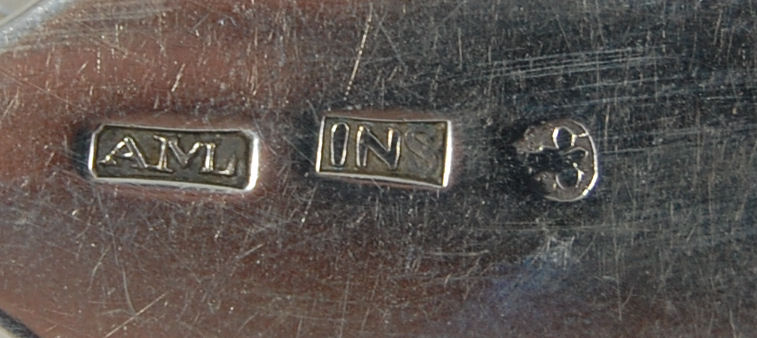 by Alexander MacLeod of Inverness, circa 1830, marked AML (conjoined), INS, stylised thistle, of Fiddle pattern with chamfered stem, the terminals engraved with foliate script initials WAS (4)
