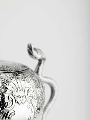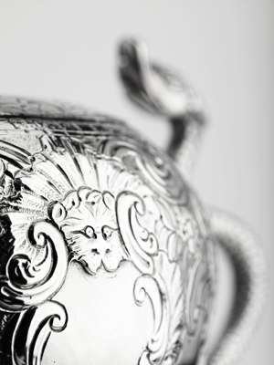 The ovoid coffee urn is perhaps the most unique design seen in Scottish silver; where the inspiration for this design emanates from still remains a mystery.