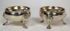 Benjamin Coutts, Edinburgh 1758 - 1759, Assay Master Hugh Gordon, of simple outline with slight baluster bodies, the rim with simple fine semi spiralled gadrooning, raised on thee scroll supports with stepped hoof terminals (2)
