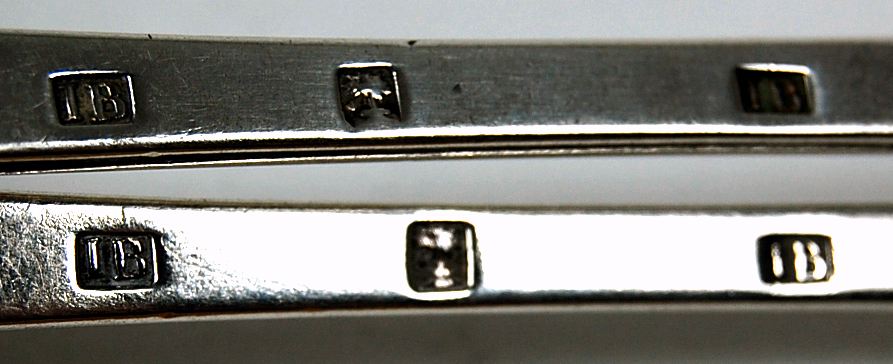 Johan Gotlieff-Bilsinds, marked IB, Glasgow Town mark, IB, of long ribbed Hanoverian pattern with engraved initials IC/TL to reverse of terminal (2)