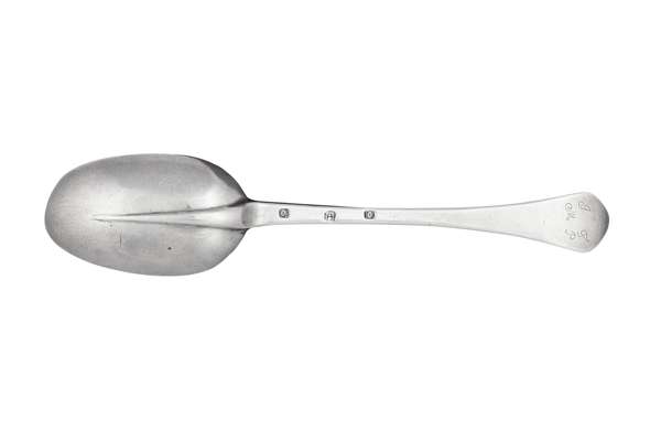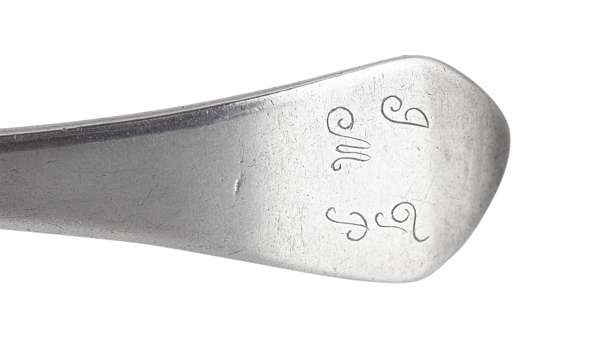 The design of this spoon is of particular interest as this unusually shaped terminal appears to suggest a transitional period between the Dog Nosed and Hanoverian patterns, often termed spatula. This design is quite accomplished on this example with the slight upturned terminal, and chamfered stem, the slender rattail is also very comparable to late Dog Nosed examples.