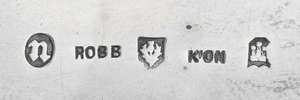 Notes: After training and briefly working in Aberdeen, William Robb moved to Kincardine O' Neil to set up in business. While he was only there for a brief and as yet unknown period, he registered his first official and 'local' hallmarks there. Items struck with the KO'N punch are extremely rare and survive in only a very small number.