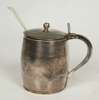 mustard pot 7.9cm high, spoon 10.5cm long, combined weight 4.3oz