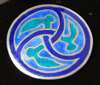 by Alexander Ritchie, marked AR, and other marks indistinct, of simple circular outline with enamelled design of triple Celtic knot in tones of blue and turquoise