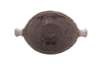the polished coconut shell body with carved armorial and supporters within foliate border with stylised flowerhead details, mounted with a simple rim and twin shaped lugs, one engraved 'AS'