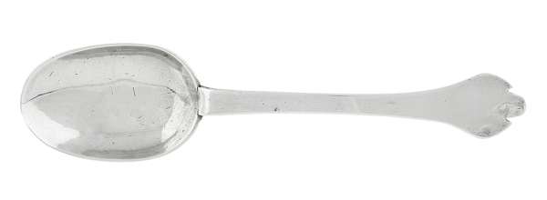 James Cockburn, Edinburgh 1682, Assay Master John Borthwick, with pronounced trefid terminal, the reverse engraved with initials 'EK', the reverse of bowl with moulded ribbed rat tail