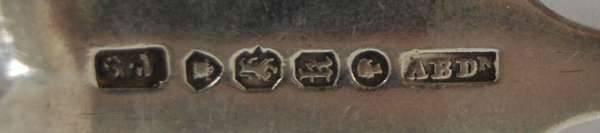 George Jamieson, to include six dessert spoons, marked GJ, London 1865, ABDn; six teaspoons similarly marked; six tablespoons marked London 1856, G.J, all of Fiddle pattern with engraved gothic initial to terminal (18)