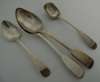 to include a Fiddle pattern jam spoon, James Pirie, marked JP, A, B, D, JP thrice; a Fiddle pattern dessert spoon William Fillan, marked WF, stylised plant thrice; a Fiddle pattern dessert spoon Alexander Grant, marked AG,A, thistle, A, AG; a pair of Fiddle pattern teaspoons John Robertson, marked JR, A, B, D; a Fiddle pattern teaspoon D & J Riddle, marked D&JR/ABDn, struck twice; a Fiddle pattern teaspoon J Walker, marked J.W thrice; a Fiddle pattern teaspoon J MacDonald (possibly), makers mark JMD only (8)