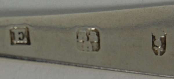 James Erksine, marked E, three castles, hand and dagger, of Old English pattern with engraved script initial C to terminal (6)