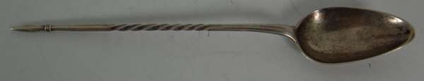 Charles Jamieson, marked CJ, J (on its side), the tapered stem with part twisted section and plain finial, the reverse of the bowl engraved with foliate initials 'AMK'