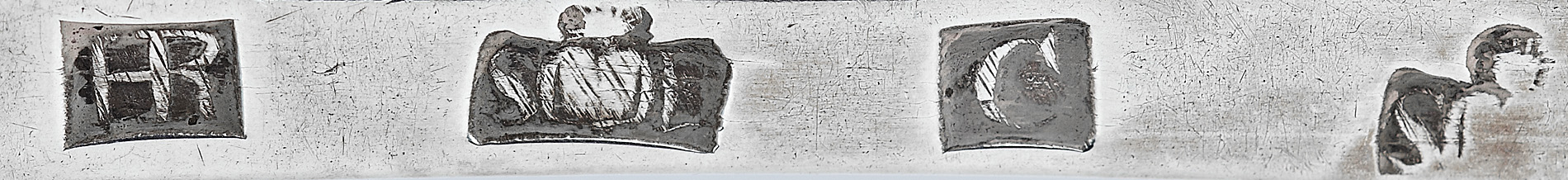 Hugh Ross, marked HR (conjoined), St Duthac with S D flanking, C, St Duthac with S D flanking (partially obscured) of Hanoverian pattern with later engraved foliate initials IC to terminal