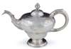 Lothian & Robertson, Edinburgh 1758, Assay Master Hugh Gordon, of inverted pear shape with a chased border decorated with foliage and flower heads, all within C scrolls with twin vacant cartouches, with swan neck spout and simple C scroll handle, raised on a domed spool foot