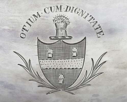Heraldry: With crest and motto of OTIUM CUM DIGNITATE Leisure with dignity for KELSO of Kelsoland, Ayrshire.