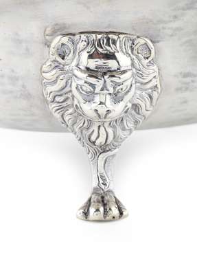 Note: This bowl is currently the earliest recorded Scottish three footed slop / sugar bowl and must be considered a fore runner of what would later become a widely used standard pattern. While this style of bowl with lion mask terminals and paw feet is often considered to be of typically Irish design this example seems to pre date the earliest known Irish examples by 10 years or more. The pattern becomes a standard of design in Dublin from around 1735 and is seen throughout the Irish production (with regional variations) right up to modern manufacture.
