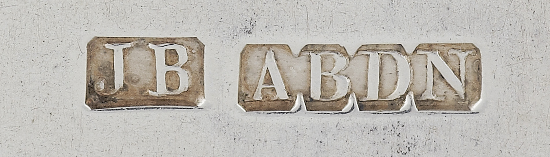 James Begg or Barron, marked JB, ABDN, of Fiddle pattern with engraved Gothic initial W to terminal (6)