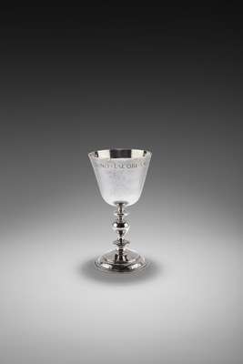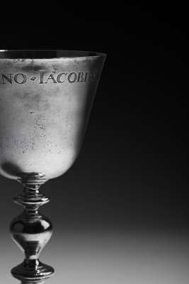 Notes: This cup forms part of the main section of the holding within the Steeple Kirk of Dundee, with the original gift of three matching cups commissioned from Robert Gardyne II. All bearing the same inscription and decoration these are the three earliest surviving cups and are amongst the earliest communion plate in Dundee. It is unknown how large the original gift of cups was and seems highly likely that three would not have been the full complement, other cups latterly being recycled and possibly re-worked into the later surviving cups; or even destroyed in the turmoil Dundee has born witness to over the past four centuries. The surviving three cups are now split with the two others held by the Kirk Sessions and within McManus Museums & Galleries collection.