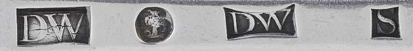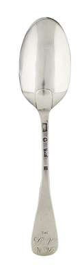 David Warnock, marked D.W, town marks, D.W, S, of wide terminal Hanoverian pattern with script initials 'RM / AB / No1' engraved to reverse of terminal, with large facetted heel to bowl