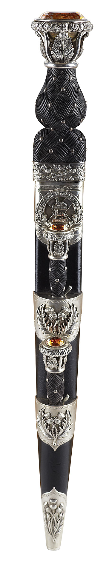 A cased late Victorian Gordon Highlanders officers dirk and sgian dubh