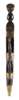 the finely carved baluster wooden handle with applied brass pin , the pommel set with brass cap with thistles and regimental badge and number, the leather scabbard with brass thistle mounts and set with bi knife and fork