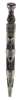 the silver plated mounts unmarked, the finely carved basket weave handle with brass studs and applied thistle mount to obverse, the flared pommel mount embossed with acorn decoration and collet set foil backed crystal, the leather covered scabbard with final chased applied mounts with regimental badge and thistles, set with bi knife and fork, the etched blade with intertwined thistles and scroll and GV cypher