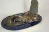 IA, Edinburgh, the oval plain onyx base with onset lapis lazuli as the water and a model in silver of an old stone bridge with tracks in the ground, mountain rescue figures in gilt and silver with a stretcher at the bottom of a mountain depicted as a slate pinnacle in naturalistic rock outcrop