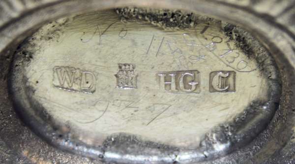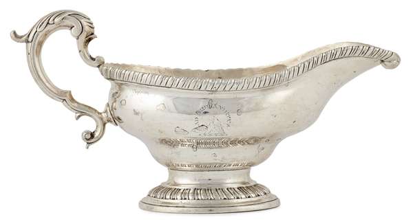 William Dempster, Edinburgh 1757, Assay Master Hugh Gordon, the tapered baluster body with gadrooned rim and acanthus capped S scroll handle, all on a stepped and gadrooned foot