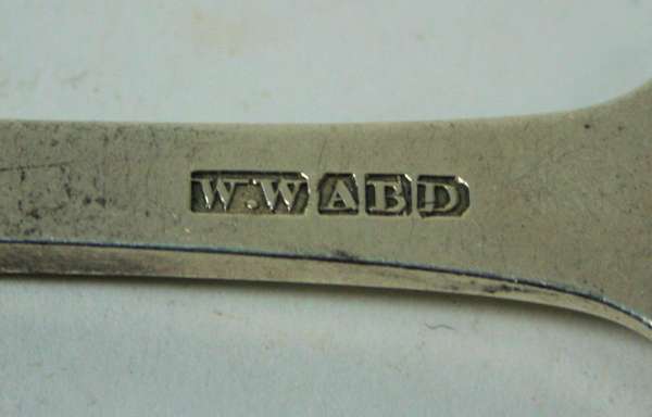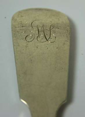 William Whitecross, marked W.W, A, B, D, of Fiddle pattern with engraved script initials 'ML' to terminal (6)