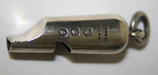 William Robb, marked ROBB, BLTR (both incuse), Edinburgh 1899, of simple plain form with shaped mouthpiece and ring suspension