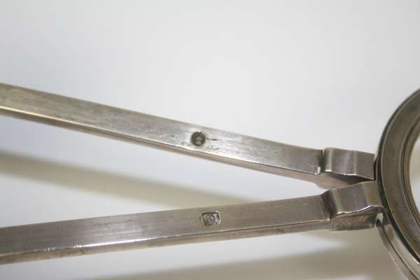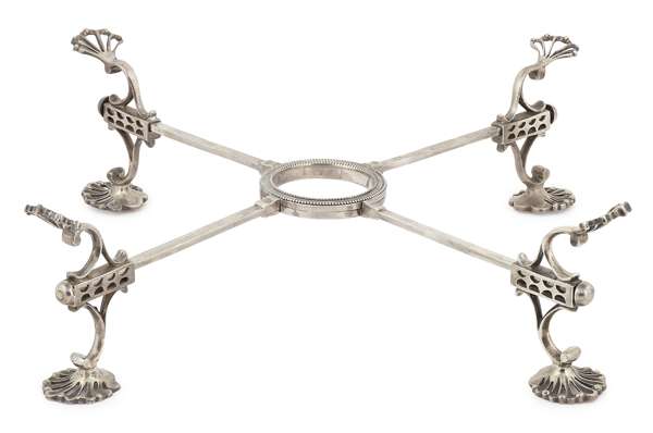 Alexander Gairdner, Edinburgh circa 1790 (date letter lacking), of conventional form with four square section supports with engraved crest and adjustable terminals, cast and pierced shell decoration, the central circular hinged section with beaded borders