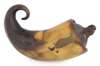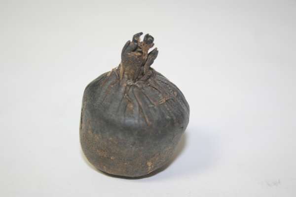 This form of curly horn snuff mull with no attached lid and only a leather covered 'bung' appears to be the earliest of this curled horn type. This style is a natural progression from baluster mulls with hinged covers, onto the simple butterfly hinged curly horns and then to the mulls with more elaborate thistle hinges and embossed decoration