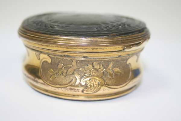 An 18th century ormolu and tortoise shell Jacobite snuff box