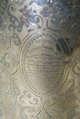The presentation inscription reads 'Presented to Alexander Campbell Esq of Monzie, by upwards of 500 non-electors of Inverness to mark their appreciation of his conduct in coming forward as a candidate, the independence of the Inverness District of Burgh at the late General Election their aprobation of the courtesy and firmness he displayed throughout the contest and their gratitude for his eloquent advocacy of the just claims of the unfranchised working man July 1857'