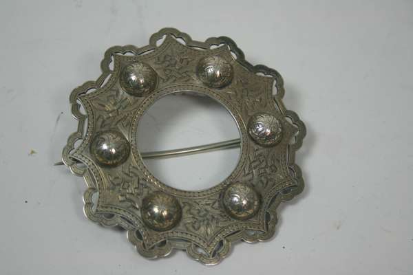 R & H B Kirkwood, Edinburgh 1892, of annular form with shaped circular outline with pierced and engraved border and Celtic bosses
