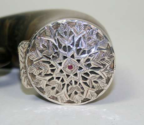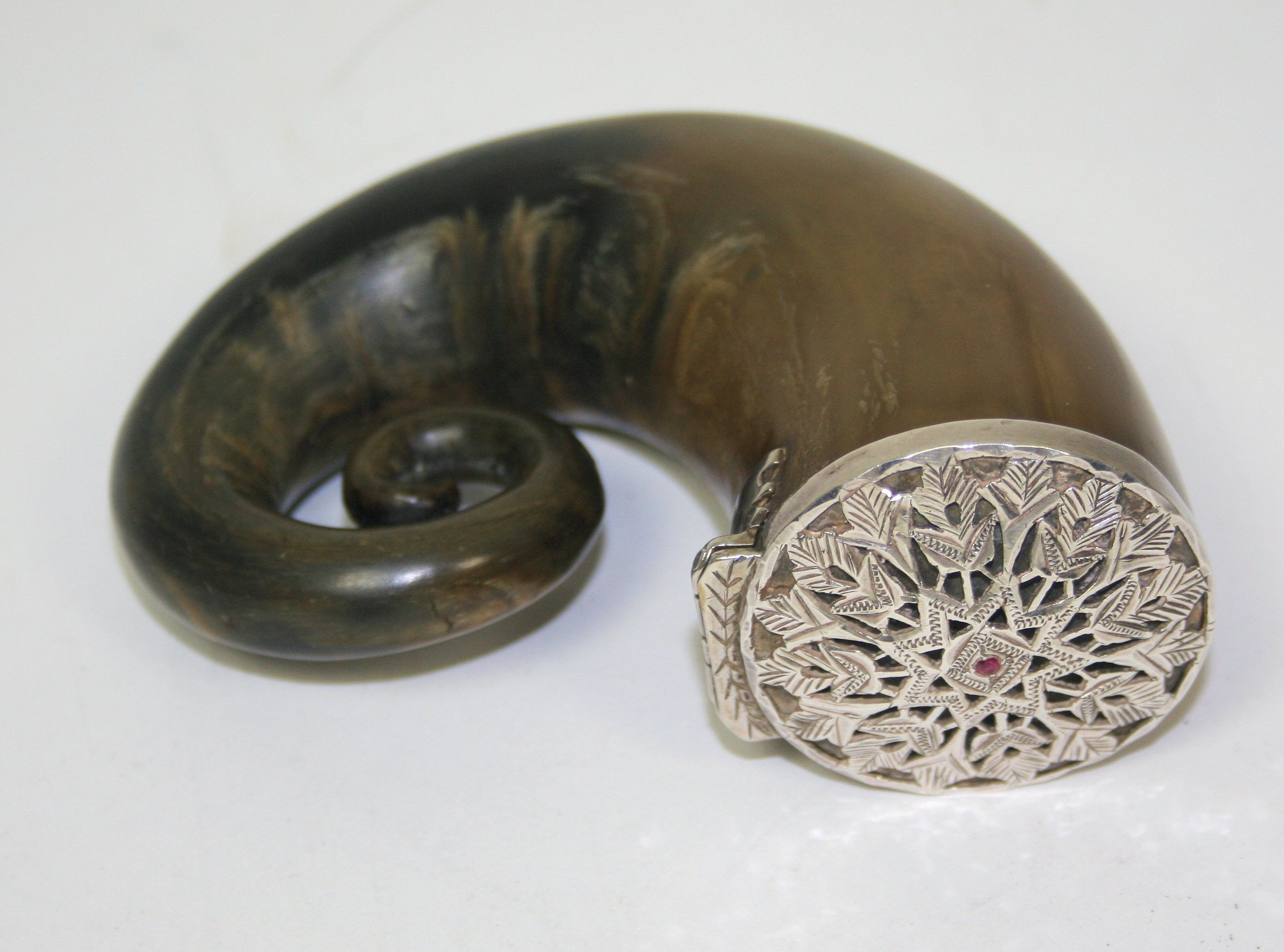 the curled blonde horn with butterfly hinge, pierced, engraved and foliate cover