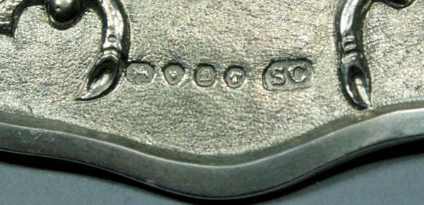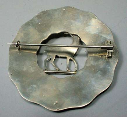 Susanna Cook, London 1848 of shaped circular outline with cast border of holly leaves and berries on a textured back ground, the centre applied with a standing stag on a heraldic torse