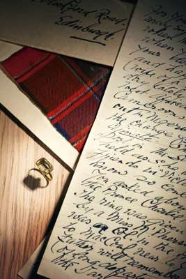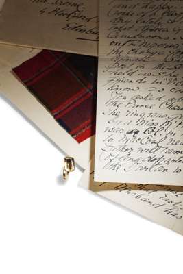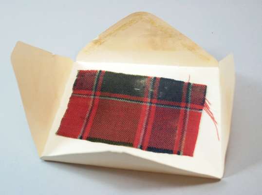 A Jacobite ring and fragment of Prince Charles Edward Stewart tartan
