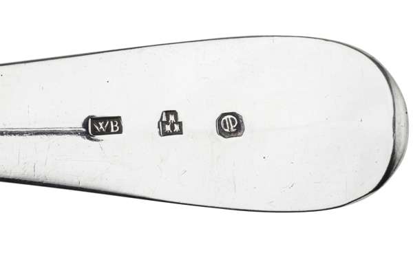 William Byres, marked WB, three castles, gothic Q, of Old English pattern with engraved crest to terminal and deep circular bowl