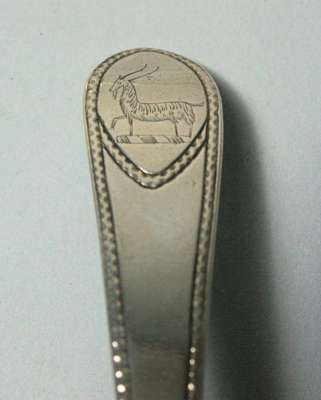 John Argo, marked JA, BANF of Celtic Point pattern with bright cut borders and oval cartouche, with engraved crest, with shallow circular bowls