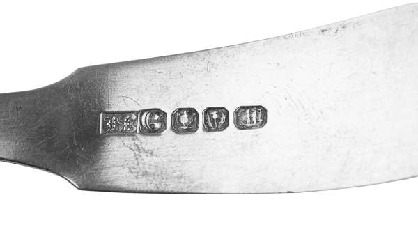three by John Summer marked, JS, G, urn, thistle, Ship in sail, of Fiddle and Shell pattern with script initial 'S' to terminal; together with another matched example by John Sid of Perth (probably), marked IS, O, urn, star, urn (4)