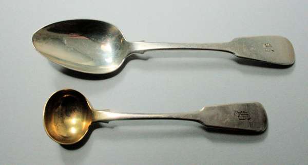 to include a Fiddle and Shell pattern toddy ladle, A Clark, Greenock; a Fiddle pattern teaspoon, Greenock; another similar, Alexander Cameron Dundee; a pair of sugar nips, William Allan, Glasgow 1861; a tea spoon and an egg spoon, John Mitchell, Glasgow; a Fiddle pattern mustard spoon, William Clark Shaw, Glasgow (qty)