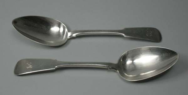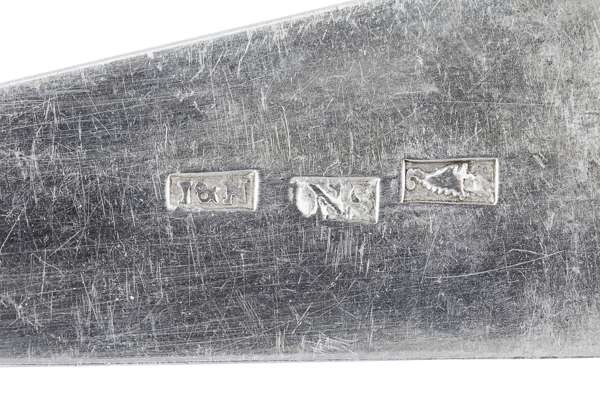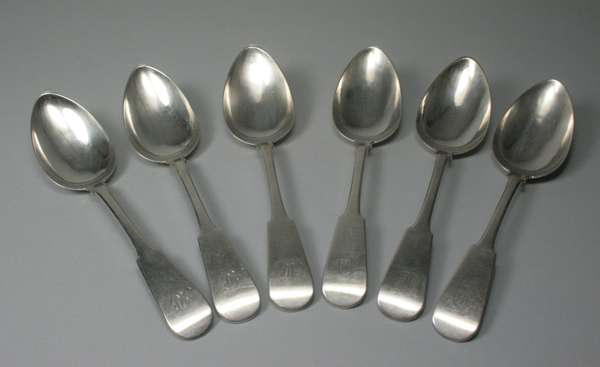 Jamieson & Naughton, marked J&N, INS, cornucopia, of Fiddle pattern with engraved initials to terminal (6)
