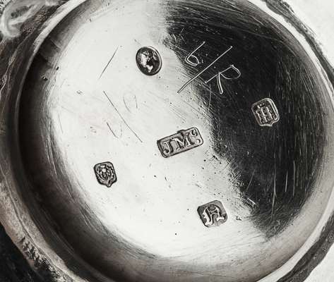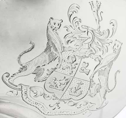 John McKay, Edinburgh 1844, the hemispherical bowl with everted scalloped and point moulded rim, with armorial engraved to body and raised on a stepped domed foot
